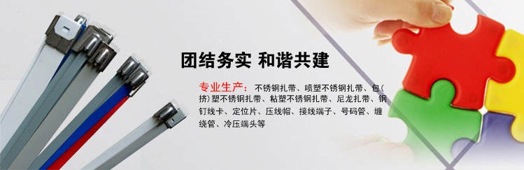 樂清迎發(fā)電纜附件有限公司專業(yè)生產(chǎn)不銹鋼扎帶、噴塑不銹鋼扎帶、包(擠)塑不銹鋼扎帶、粘塑不銹鋼扎帶、尼龍扎帶、鋼釘線卡、定位...